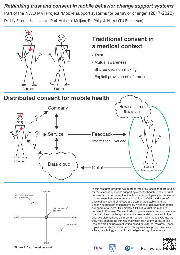 Frank, L., Nickel, P., Meijers, A., Loosman, I. (2017, November). Rethinking trust and consent in mobile behavior change support systems. Poster session presented at: OZSW Conference 2017, The Netherlands.